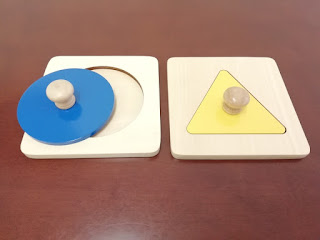 こちらは、大きさを見分けて、同じ大きさの型に丸い板をはめ込みます。